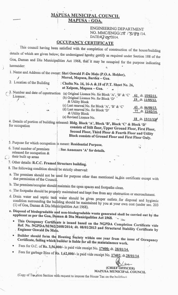 Occupancy Certificate: