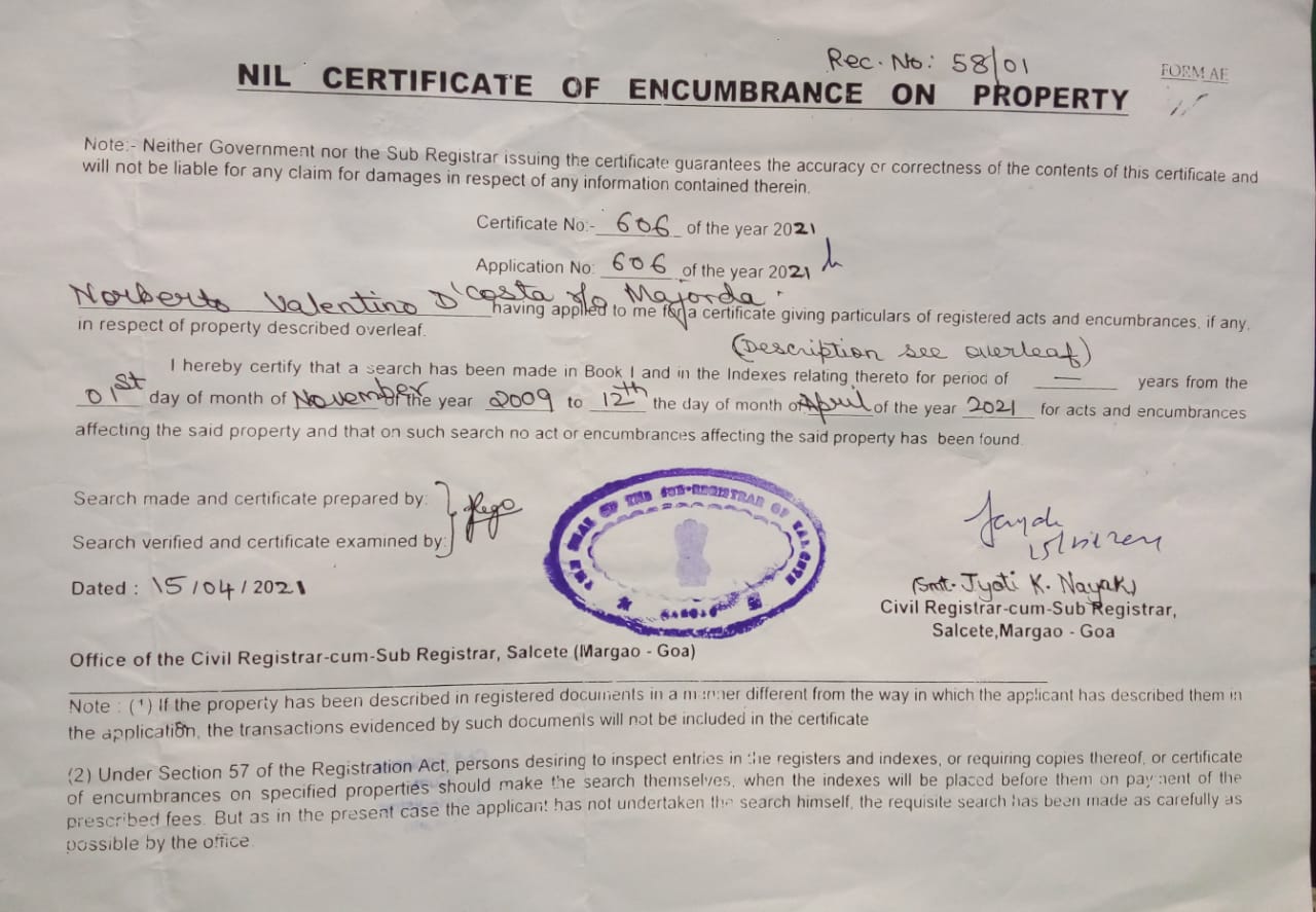 RERA Registration No. : PRGO01221523 Registration Type : Individual Registration Certificate