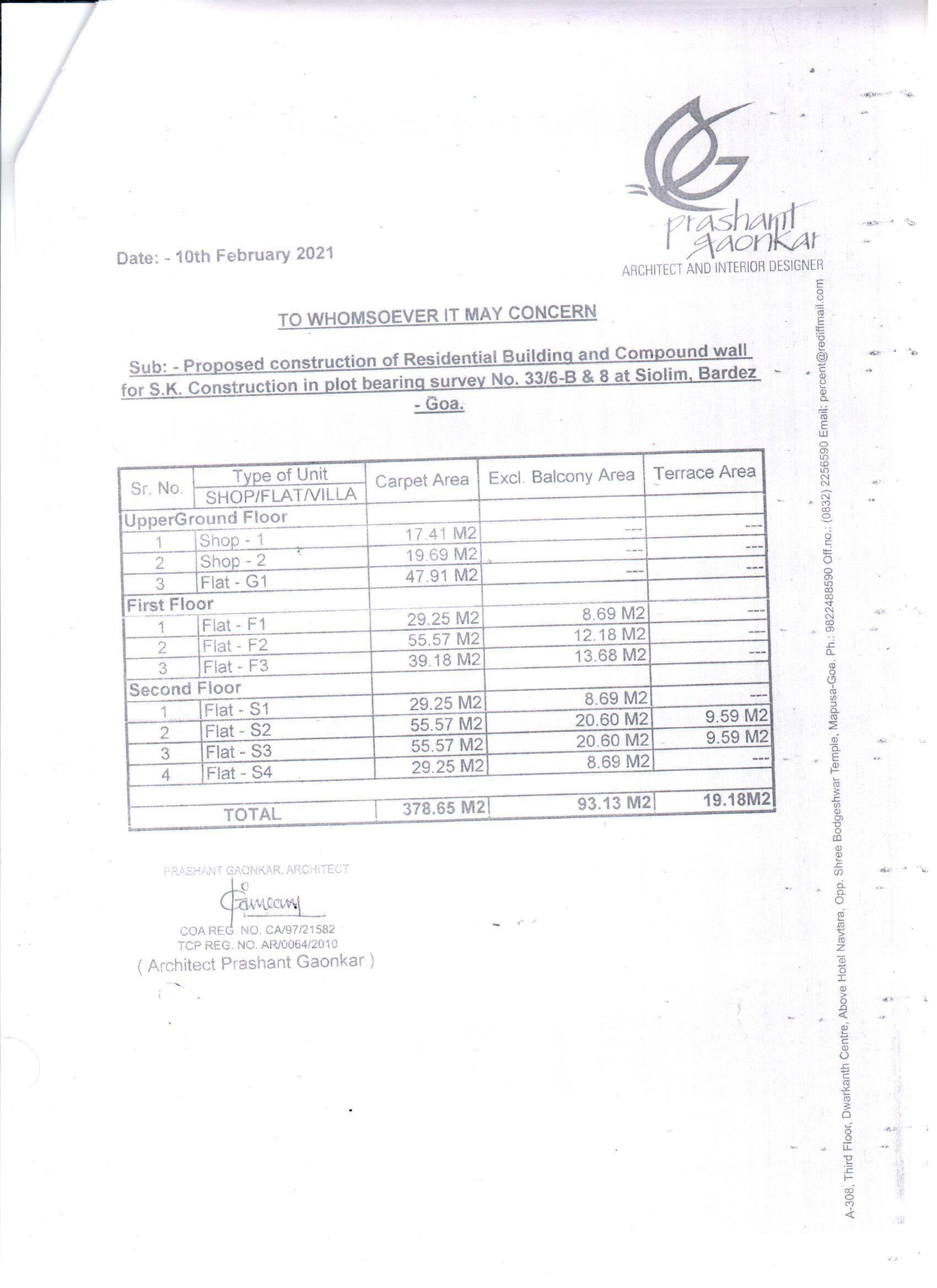 Project Comprising of 02 Nos - Shops 05 Nos - 2 BHK & 3 Nos - 01 BHK