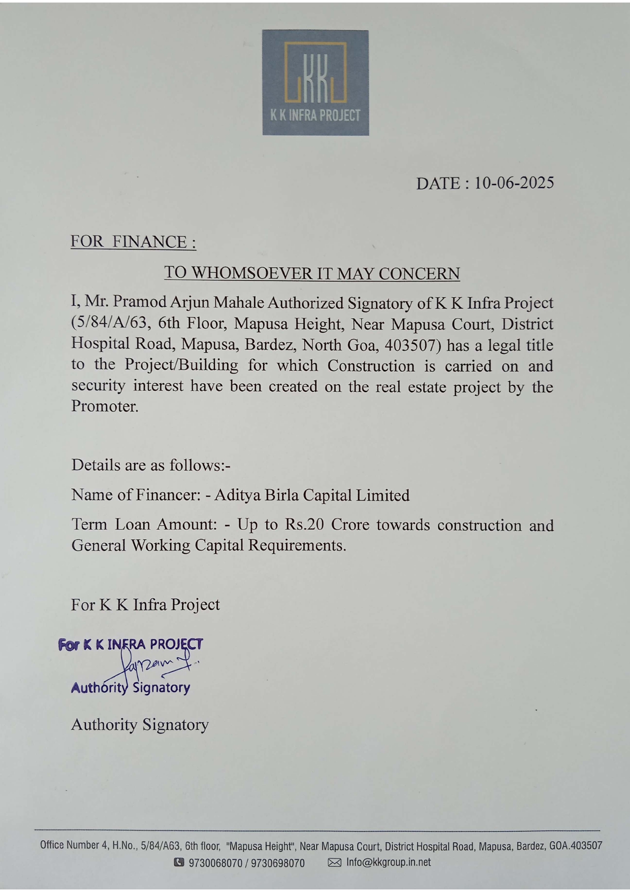 | Partnership Firm | K K INFRA PROJECT | account[at]kkgroup[dot]in[dot]net | 9820114747 |