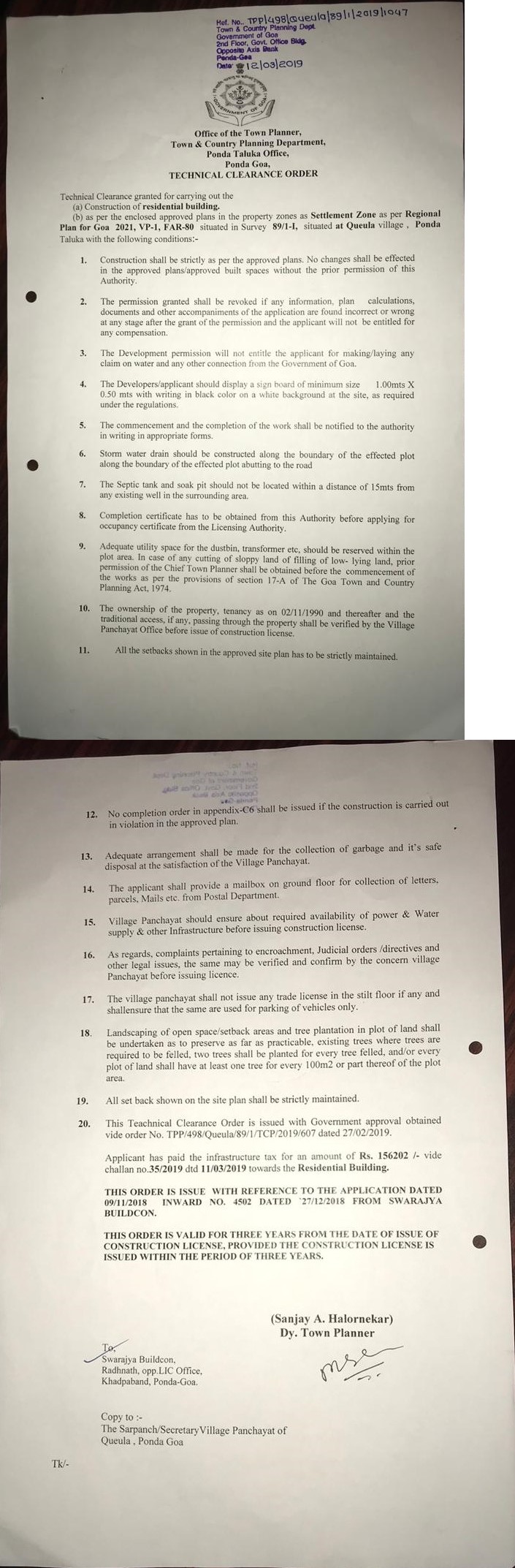 | Completion Order from Town and Country Planning Authority of Ponda | |||||||||||