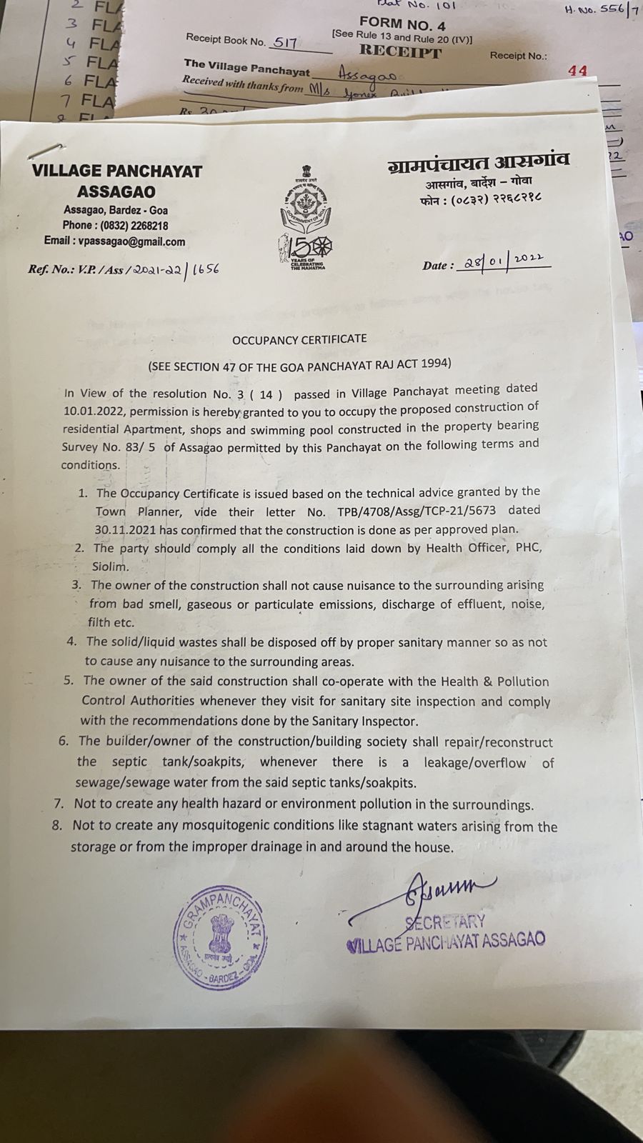 | VILLAGE PANCHAYAT ASSAGAO | VP/ASS/21-22/1656 | 28-Jan-2022 | 11-Apr-2022 |