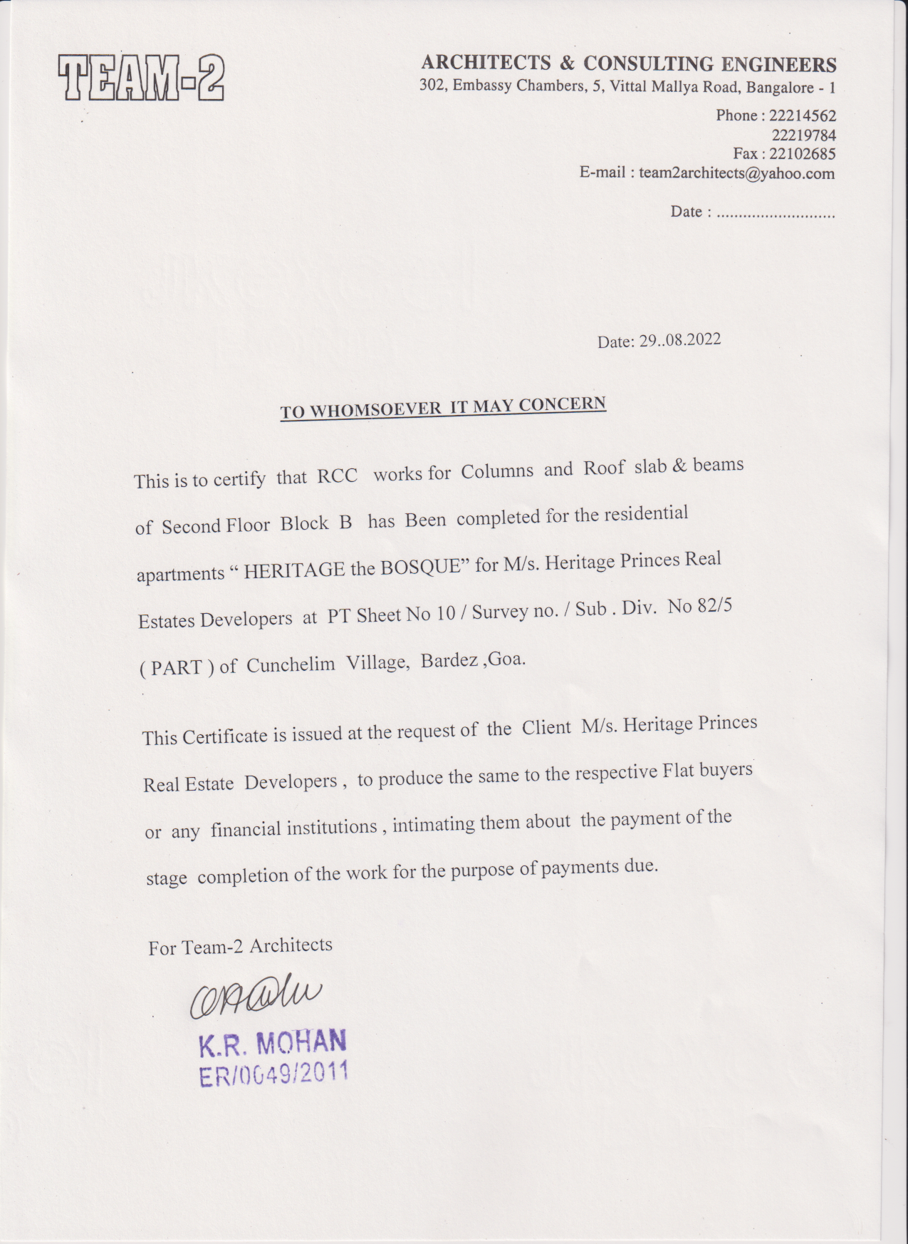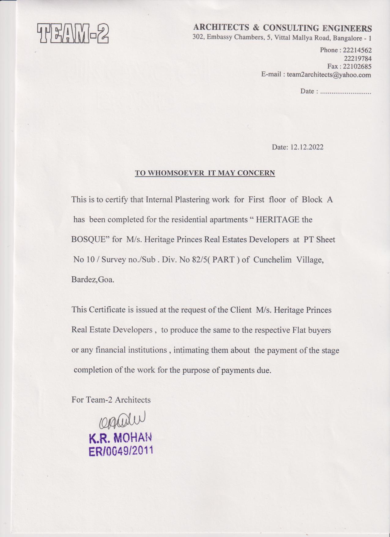 | Other documents/information | Architect Certificate | Architect Certificate.pdf |
