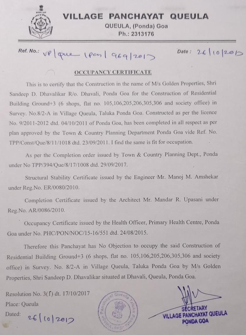 Golden Heritage Opp. Powermax Gym, Behind Bhagwati Temple , Off Dhavali Bypass road, Dhavali Ponda Goa