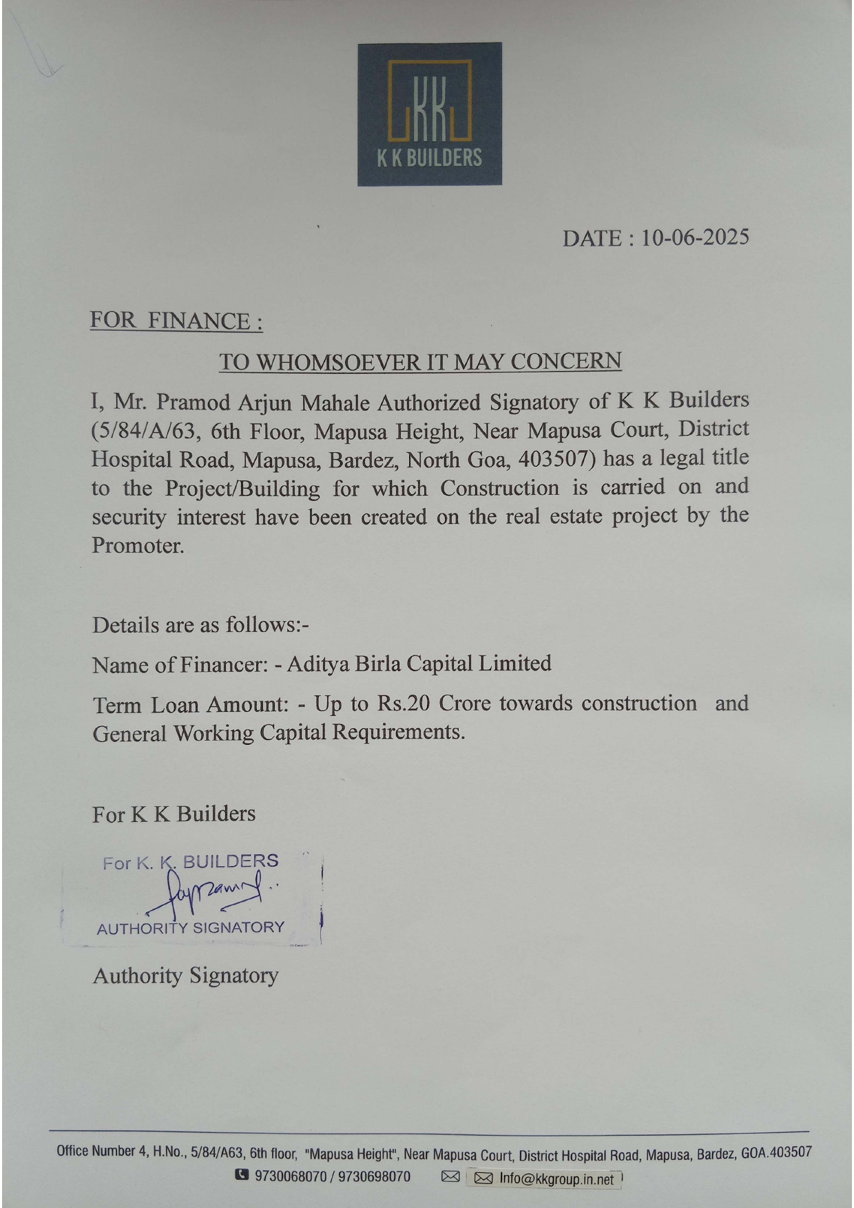| Partnership Firm | K K BUILDERS | info[at]kkgroup[dot]in[dot]net | 9820114747 |