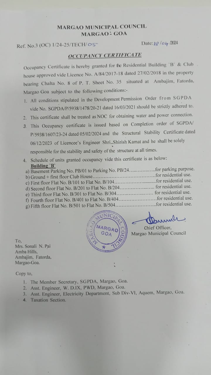 Occupancy Certificate:
